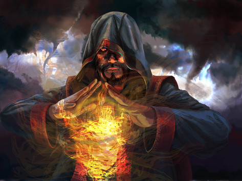 I really like this image, & felt that the pyromancer needed some orange/not green flames.