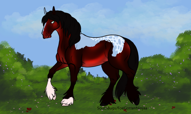 Chocolate Chestnut pangare with sooty snowflake appaloosa and flaxen