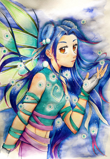 Uwaaaah, she's so cuuute! :iconiloveloveplz: I totally love those big eyes and the clothes, too, are amazing!