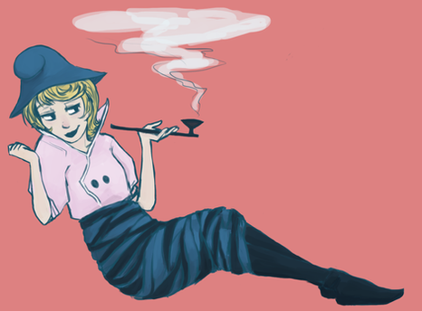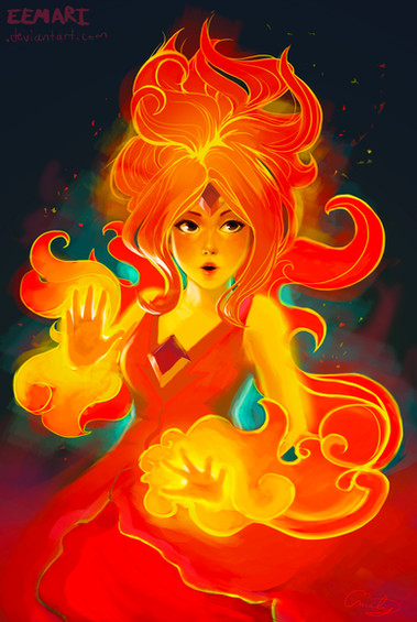 Oooh, she looks nice. c: I love how you colored the fire with those amazing textures and brush strokes. <3 And her hands look very nice! If only I could draw nice hand like that all the time.. ^___^