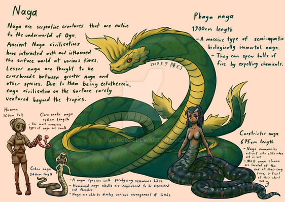 Yup, there are Naga in this setting, they live underwater, and are believed to have some cities there and are 'generally' considered to be quite hospitable to outsiders. But that's really only because the ones that you usually meet on the surface are there to trace trinkets and items with land dwellers. There have been rumours of Naga pirates setting upon peaceful merchant vessels, and raiding coastal villages, but these might just be myths and legends.