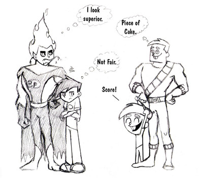 Awww, poor Fentonβ¦*pats him on the back* LOL! Evil Danny and Phantom are so funny. You did a great job on all three of them.