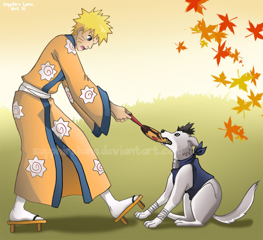 Awwwww... doggy doggy doggy! Kiba is the best! I had a similar idea for halloween, but not quite this cute. I'm sure Kiba has plenty Akamaru-sized clothing at home. :3