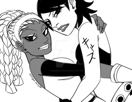 I really love how you drew their boobs and the arm part of the bright girl Also the pose is so hot and tempting. Great job. I like b&w artworks like yours.