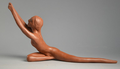 terracotta clay, wax finish, 12"I realized that I had posted the WIP for this, but never the finished sculpture. She actually had some cracks during the initial bisque fire, which I had to fix, but not too obvious. (Not like the Shattered piece which broke into a thousand million pieces!) Since I could not fire a second time, I finished with wax, which allowed me to add some color.