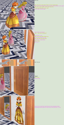 This is for who requested this back in May 2013 and wanted basically this (He wanted the princess looking at each other and going "uh-oh" but I wasn't exactly looking at the request when I was doing this. At the time I wasn't able to do this due to lacking a certain aspect (the room environemnt), so they requested something else instead, but now that I have since obtained that I decided to go ahead and do it.