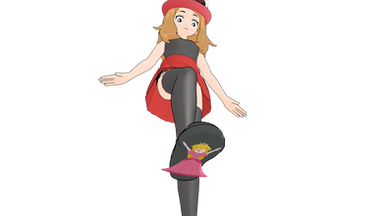 Dawn is stuck gum under the Legendary One's foot. I like