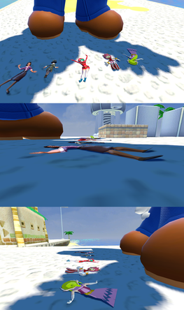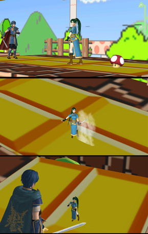 Huh? *checks her rear and sees Peach flattened on it* Oh... sorry, Peach... *peels her off*