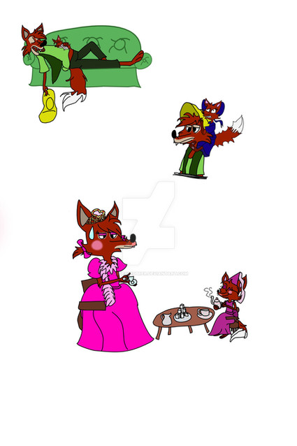 Bottom Right: Brer Fox in drag....I blame someone on Instagram who drew her character in drag. Honestly, it was probably some kind of trick by Ryn. She's so grounded when he's done dressing up.
