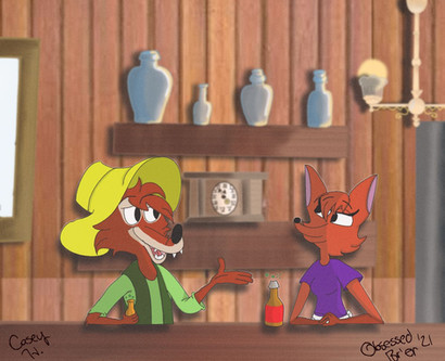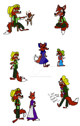 Bottom: Oh God . Yunana-T-Leaf and I on Instagram were talking about....something, can't remember and somehow we got on the subject of Br'er Fox in a dress. She drew him in a fancy dress and hat, while I drew him in the poofiest, pinkiest, girlest dress I could draw and having a tea party with Ryn. It's honestly probably something that would only happen in the Au. Shes a tomboy in the normal universe and HATES the color pink. She acts more like a girl in the AU lmao. XD