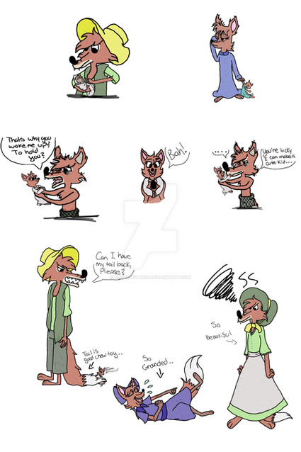 Can't help it. I get random ideas at work and I just have to draw them. Not as many this time because I ran out of room but this is what we got this time:Top: Brer Fox fell asleep on the couch with the bebe. Based off of a picture of myself as a baby and sitting on my dad on the couch.