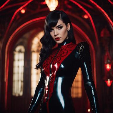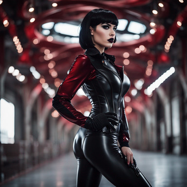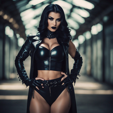 #gothic #leather #ai #dreamup #beauty #vampire #black #corset #demon #demonhunter #fantasyart #gloves #hair #vampirehunter #ai_art