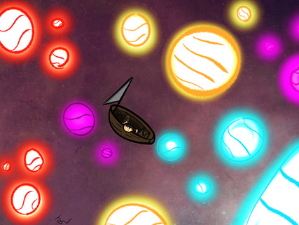 #boat #bridge #cliff #moon #mspaint #river #space #stars #water