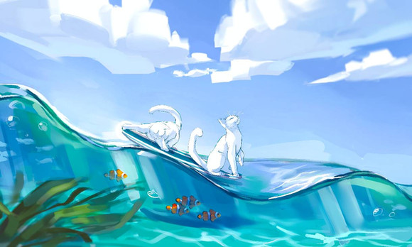 #cat #cloud #clouds #feline #ocean #sky #water #wave #waves