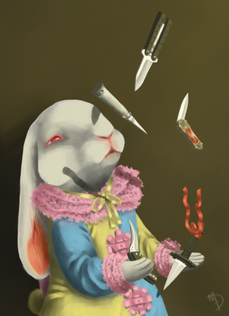 Ho, quel adorable petit lapin, tout mignon, avec ses yeux manquants, et ses grosses papattes de mante religieuse.....On a envie de lui faire un cΓ’lin. 8D