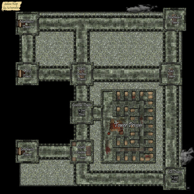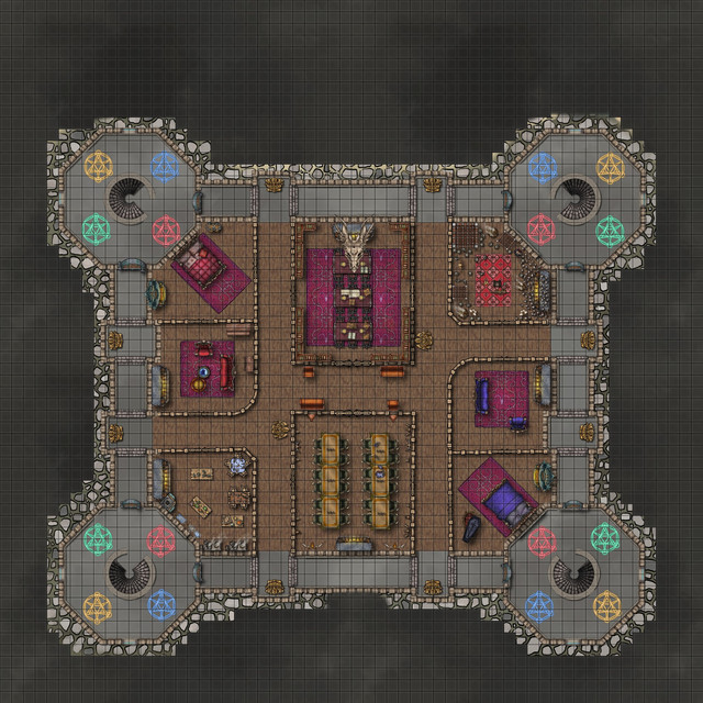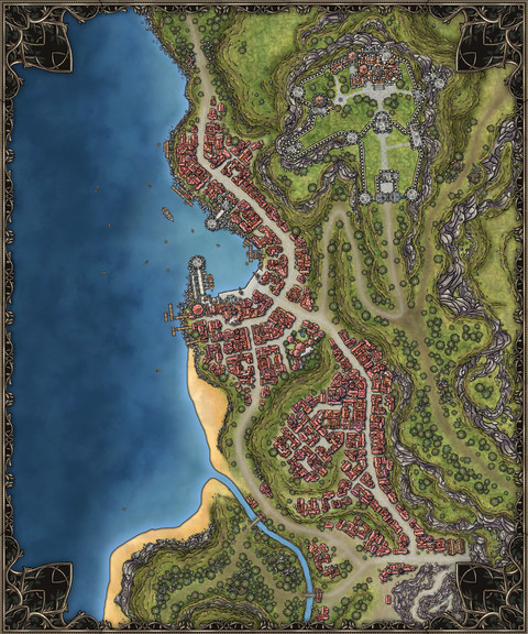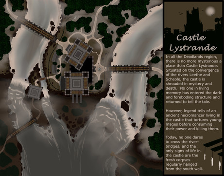 A castle inspired by Champions Return to Arms / Champions of Norrath. I used it for a vampire themed DnD game I ran.Made on Inkarnate.