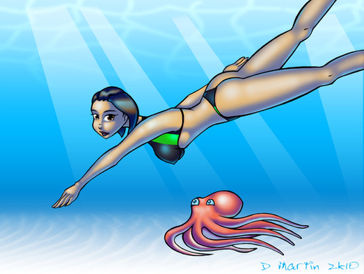 Very cartoony but very well done. Like the female figure and love the yellow bikini. Nice Job!