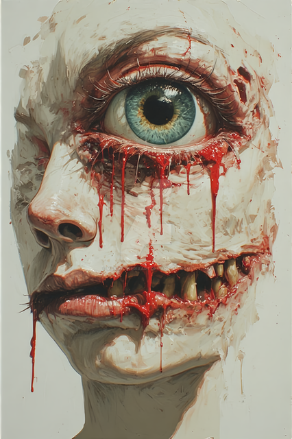 #bathroom #creature #dream #eye #face #mirror #portrait #red #reflection #room #skin #strange #worlds #other