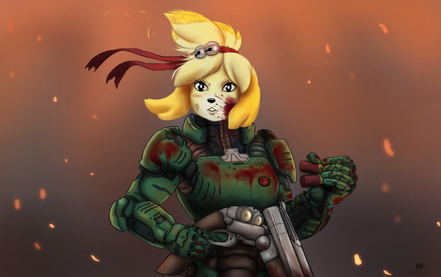Isabelle as Doomguy's mad dog.Original image: awr