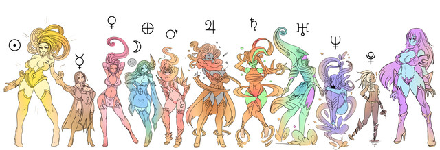 A lo mucho, esta es la imagen más dificil que me he coloreado. Es nuestro sistema solar, pero cada planeta es una chica.