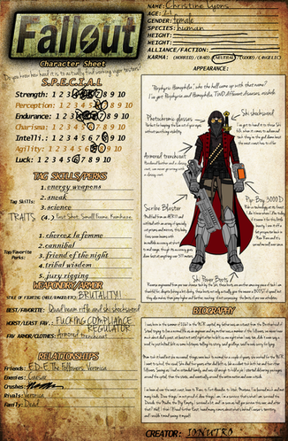 Offical Fallout character memeIt's got all the dirty secrets in it. :3