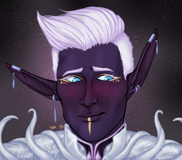 I've wanted to draw a portrait of Fane with some skin on his bones for a while (though he's deeply endearing as he is, bones and all) - there's a lot of fun in that DOS2 really doesn't give you too much on what he might have looked like in life. As such, much of this portrait is speculative gleaning from what snippets you get if you opt to take Fane to i'm sorry the bone zone. There's really only two things about this interpretation that are strictly canon.