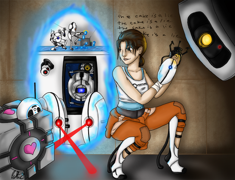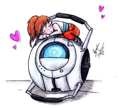 Also, thank you for not drawing GLaDOS as a human girl-type-thing. >>;; I love her Companion Cube heart. Hahaha.