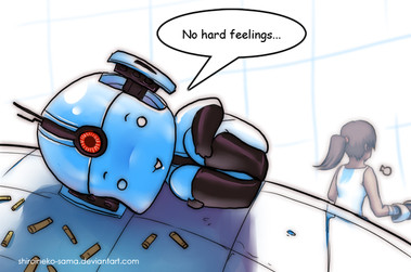 Thank you! It's true, fluffy GLaDOS/Chell will never compute (it makes me cringe a little in fanfiction)...And yet, it's oddly fun to draw. Ah, guilty pleasures. *laughs*