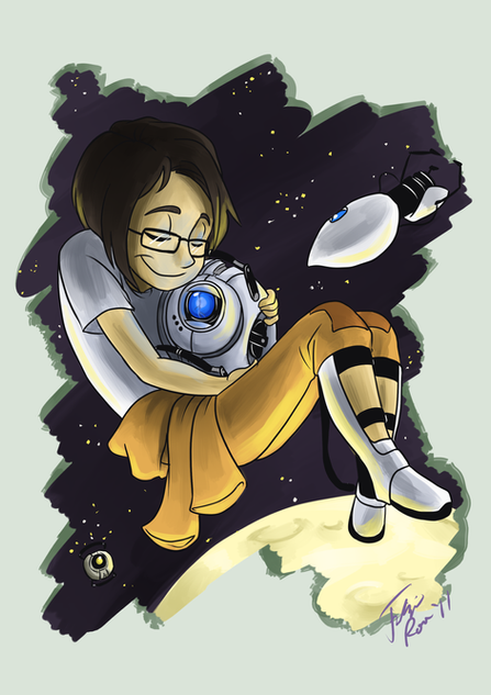 I actually do ship them romantically as well as platonically, but you can take this picture however you like - it's not strictly a shippy picture. I just like the dynamic between GLaDOS and Chell, whether it's as friends or as a relationship. It's really interesting.