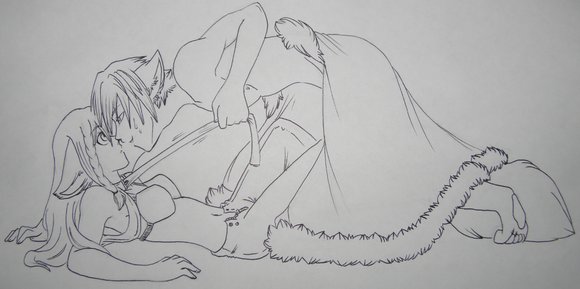 Man, I envy your anatomy skills and how you can get a sketch to look so damn... well, HAWT. This is amazing. I love the male's hands and the gal's curves. Definitely stunning, for just being a quicky. Get it?