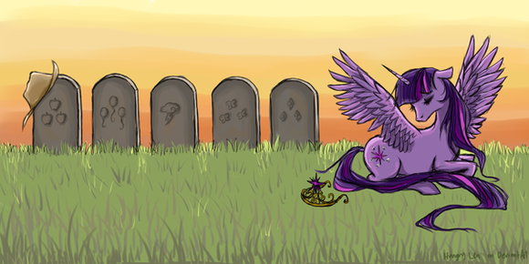 A sad but interesting and moving concept. The good news is that since Twilight officially became an alicorn princess, there's been a lot of chatter and messages that she will live just as long as her friends. And if the longevity of Granny Smith and her even older Auntie Applesauce are any indication, the Mane Six all have long and full lives ahead of them. They just might not have all their teeth by then.