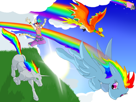 On a more positive note, yesterday I thought up a short fan story called "The Golden Mares" that sees the Mane Six all alive and well in their elder years, with Twilight about to celebrate her Diamond Jubilee (60 years) as Princess of Friendship. They look like Granny Smith in appearance and gather at Twiley's castle once a week for their reading circle. Rainbow Dash argues that their next book should be "Daring Do Comes Out of Retirement" whilst Fluttershy suggests "How I Made the Parasprites Nice and Not So Hungry", written by her daughter from her husband Big Mac. On the big jubilee celebration, Twiley addresses the Ponyville crowd from her balcony with the other five, now knighted as duchesses and ladies, proclaiming that of all the magic she has learned in her many years, the greatest and most powerful kind of all is the magic of friendship.