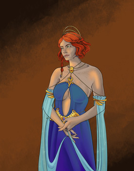 Niessa is a student priestess at the Olvetariae City Library. She was born 21 years ago in the city of Olvetariae as the daughter of a merchant couple. Her parents were afraid that he would be ostracized by the olenis for being human, but their worries turned out to be unfounded. The little girl had an immeasurable desire for knowledge at a very young age, and her modesty and diligence quickly endeared her to the priestesses of the library. She was sixteen when they welcomed her into the library, and Niessa accepted without a second thought the opportunity to learn more - mostly about magic - as a priestess of Faegno, the celue of soul and spirit.