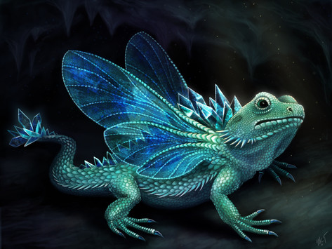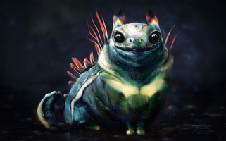 The added crystals to the scales is a nice touch! I thought I was clicking a thumbnail of a photomanip of a real lizard at first...ya fooled me. Nice going!