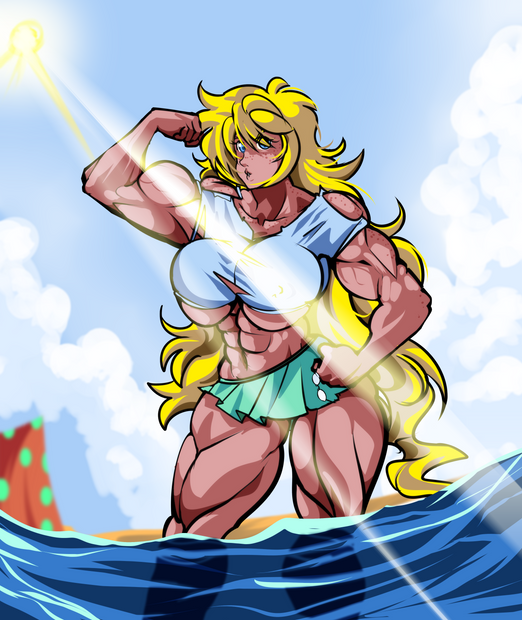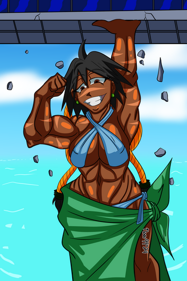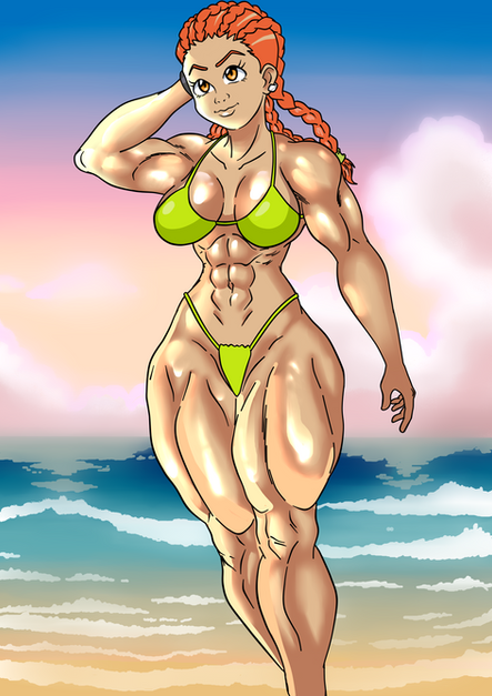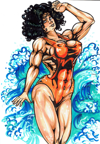 #fbb #pool #digitalcolor #musclegirl #redhairedgirl #traditionalart #muscularwoman