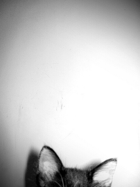 this image is very striking, of course the black and white contrast, but also something i love very much about my cat (and consequently this on as well) - the BIG, dreamy eyes. they get big when he is on the offensive or when he's simply excited (sometimes even scared).