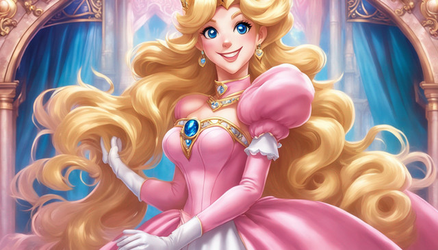 #videogamefanart #princess #nintendo #ai #dreamup #3d #aurora #beautiful #blonde #castle #crown #cute #dress #fantasy #flowers #gloves #gown #jewels #peach #pink #pretty #queen #satin #silk #sunlight #tiara #ai_art