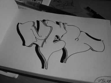 this is really good but make it more affective by making the writting stand out more, so for example use a slightly darker shade of blue in side the writing but keep the colour on the outside of the word the same, this will make the writting stand out from the background colour. Or you could do the oppostite and do the outside colour darker and the inside of the word lighter either way it would make the writting more bold and it will tell you that, that is the main part of the drawing. but it still looks good like this.