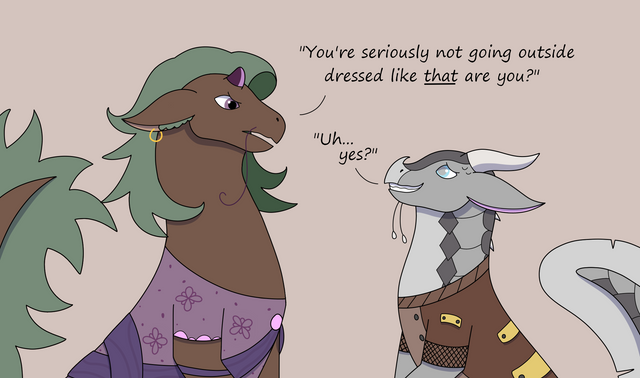 If you reference or re-post this or any of my art, be sure to credit me for making the original! Link backs are appreciated.Contest entry for blaze-is-okay ! I decided to draw genderbent Shore giving up his jewelry to genderbent Wither.