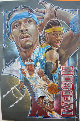 Traditional Illustration of Philadelphia 76ers' Guard Allen IversonLeo Garcia. Gouache (11"x17") 2017.