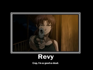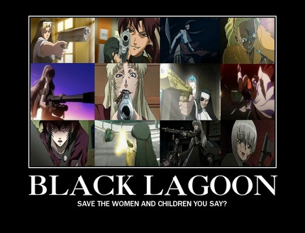 This is Balalaika from Black Lagoon. I was watching it earlier and when this came on the screen I HAD to screen shot it!The first thing that came to my mind is "What if she was pointing the gun at me?" and I thought to myself, "I'd wish I'd gotten health insurance, that bitch is CRAZY!"