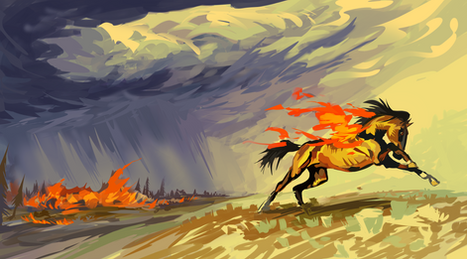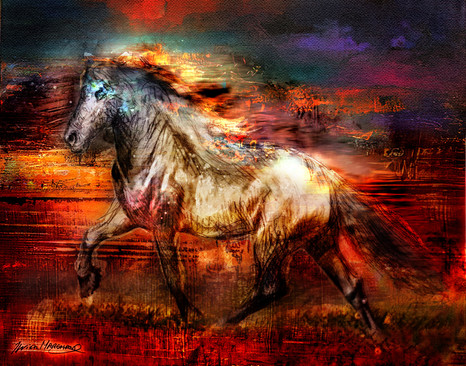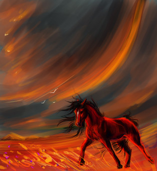 I think the horse looks very innocent but the colourful fire looks very hot. This technique fits perfectly.