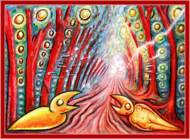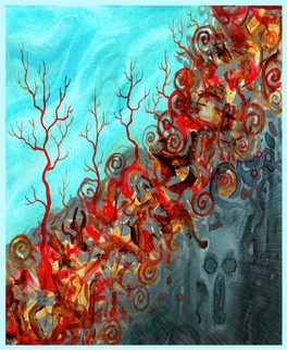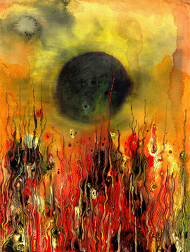 'Fire Flight', watercolor, acrylic, ps, 2013 -watch full view-Painted in 2 different layers, mixed & processed in photoshop