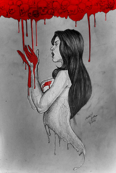 Love the ink work on her and the little skulls in the background. The colors are amazing! Another gorgeous piece! good luck in the contest!