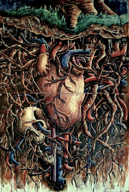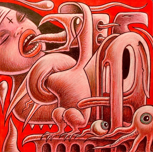 'Sweet gone Rotten' , ballpoint, watercolour, crayon, 2011Man's parade of futility