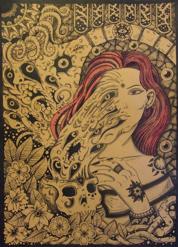 'Transmutations', color pencil on colored paper, 2014 -Watch in full view-Album art for Vulture