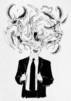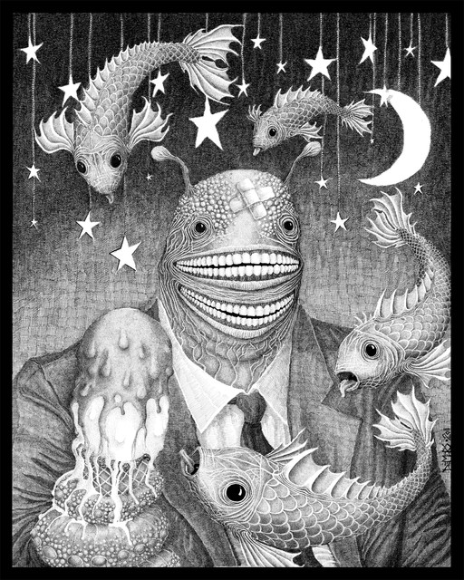 Makes me think of the movie "They Live", that suit and tie. The fish is the real wild card.