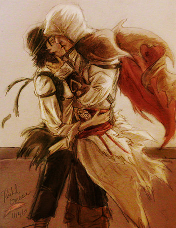 This is really a piece of art. Your Ezio and Altair in this picture are really great. So dark style, maybe they remind me a bit of Angel Sanctuary...Two angels of death.... This could be the perfect title for this drawing