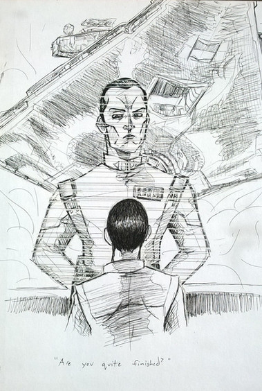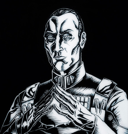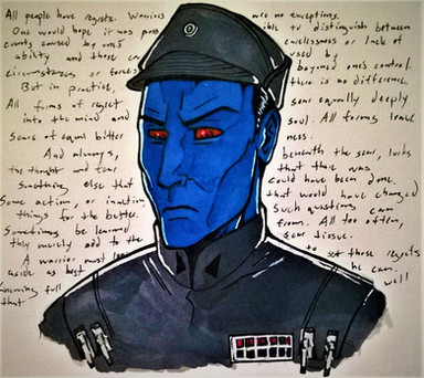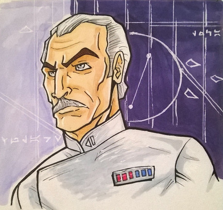 Day 8: "backstab". This one wasn't hard.I haven't drawn Thrawn in ages. The last time I did anything with him actually was the best paper I've ever written, on the narrative sustainability of Star Wars. Good times...