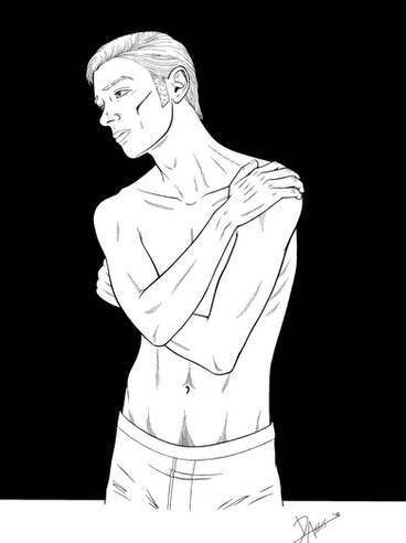 *There is a reason for the frequent state(s) of undress (besides bloody fanservice): whenever he undergoes the Cernunnos transformation, the deity tends to run amok however the hell it pleases. Which ruins clothes, and often results in various physical injury. The scars tend to weep blood as well, which again, ruins clothes. If you're trying to keep that little detail about yourself hidden, then you best not be visiting the physician or tailor frequently, if ever!